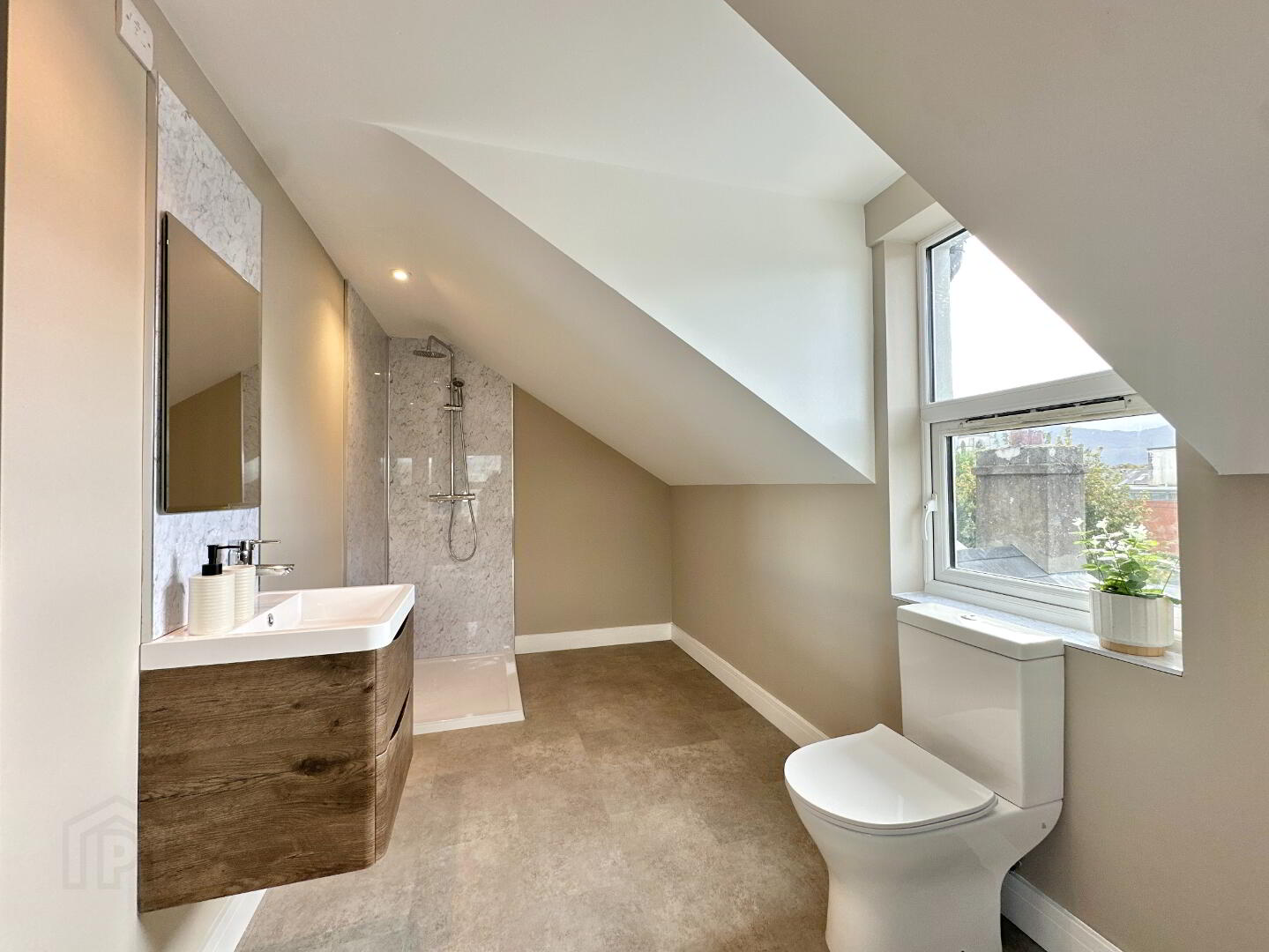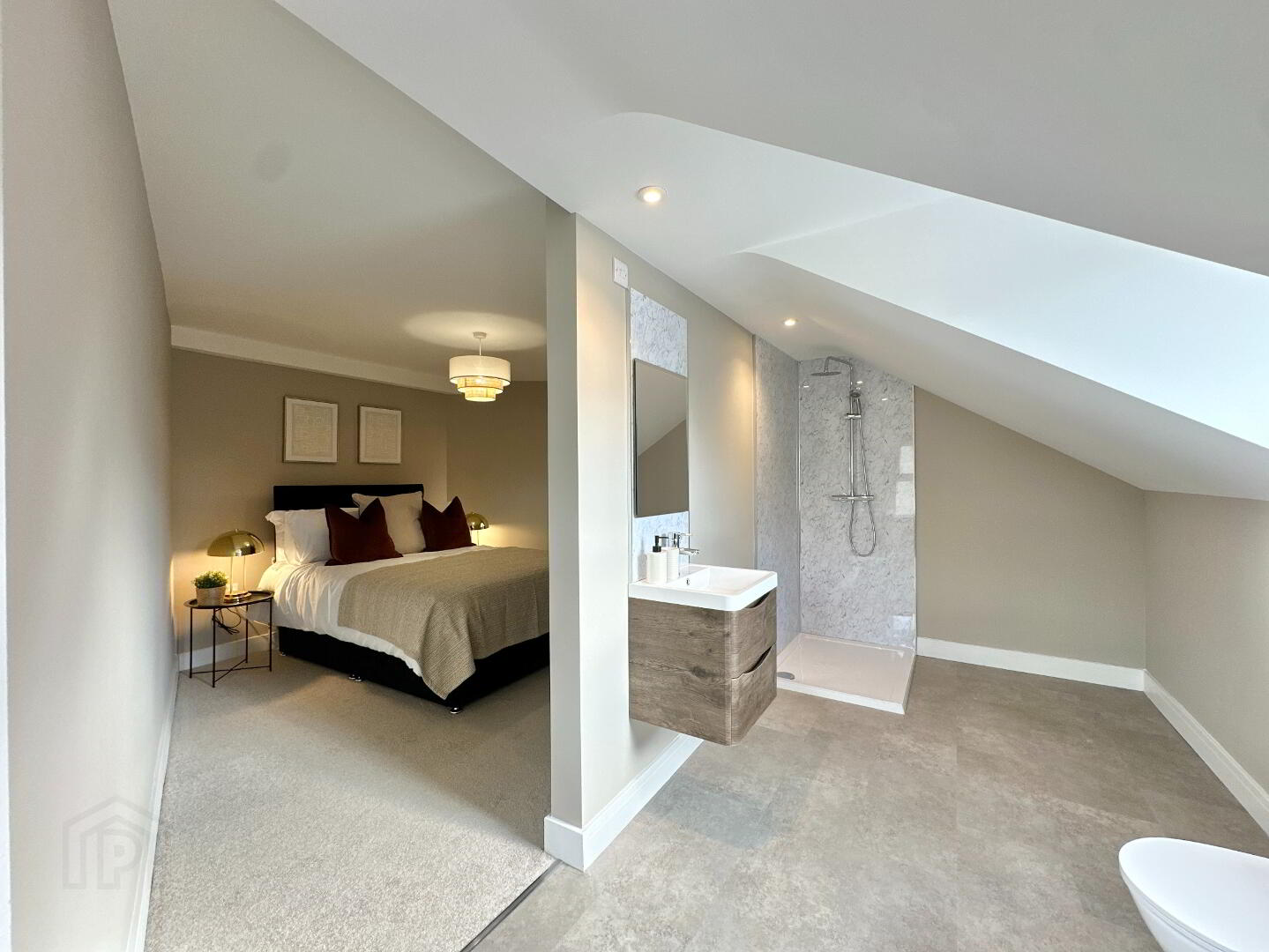 Bedroom 5 3.20m x 2.60m. Carpet, rear aspect. Open plan Ensuite: 4.40m x 2.20m. Toilet, floating vanity wash hand basin, thermostatic power shower, Luxury vinyl tile flooring.