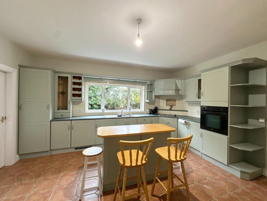Kitchen/Dining: 4.80m x 4.60m. High and low level units, stainless steel sink, integrated oven, ceramic hob, extractor, fridge, tiled floor.