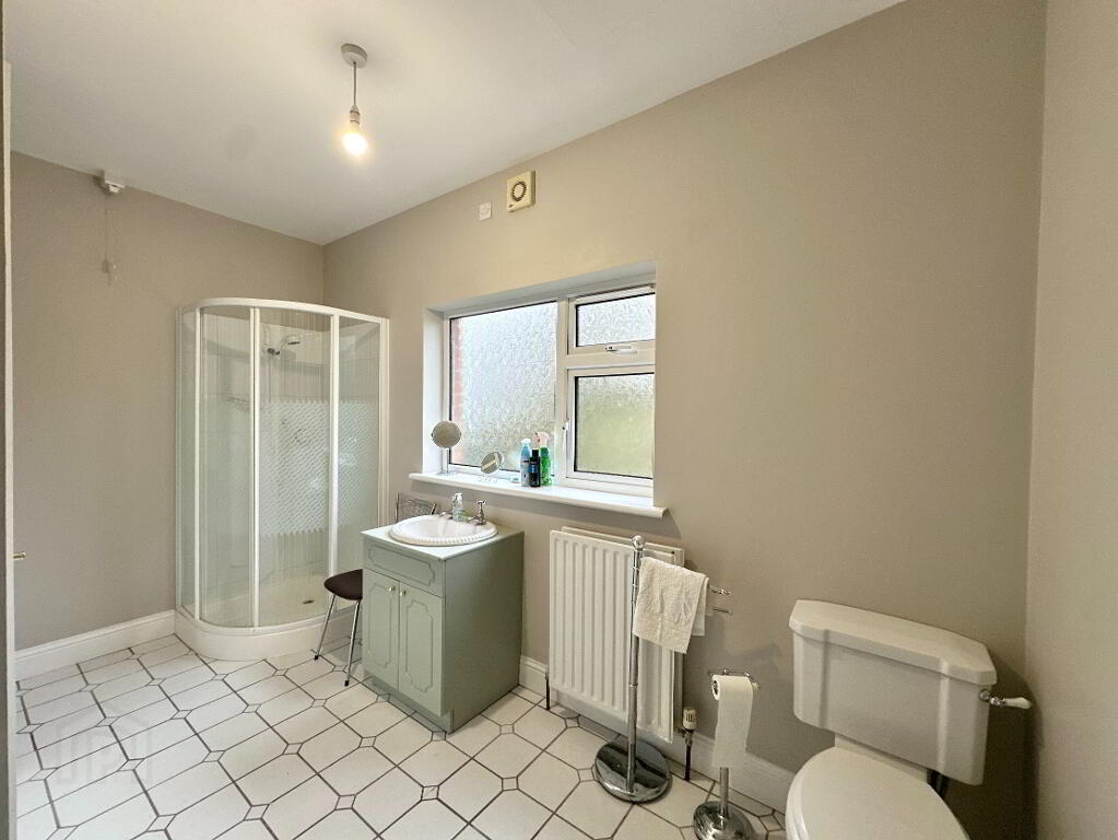 Family Bathroom: 3.80m x 2.40m. Bathroom suite comprising of toilet, wash hand basin, electric shower and bath, tiled floor.