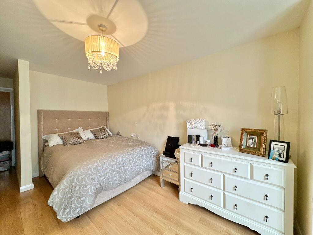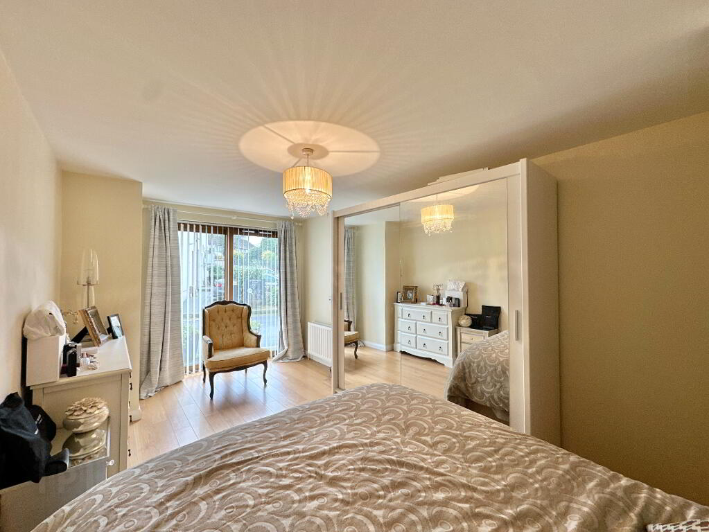 Bedroom 1 5.10m x 2.80m. Laminate flooring, free standing wardrobe.