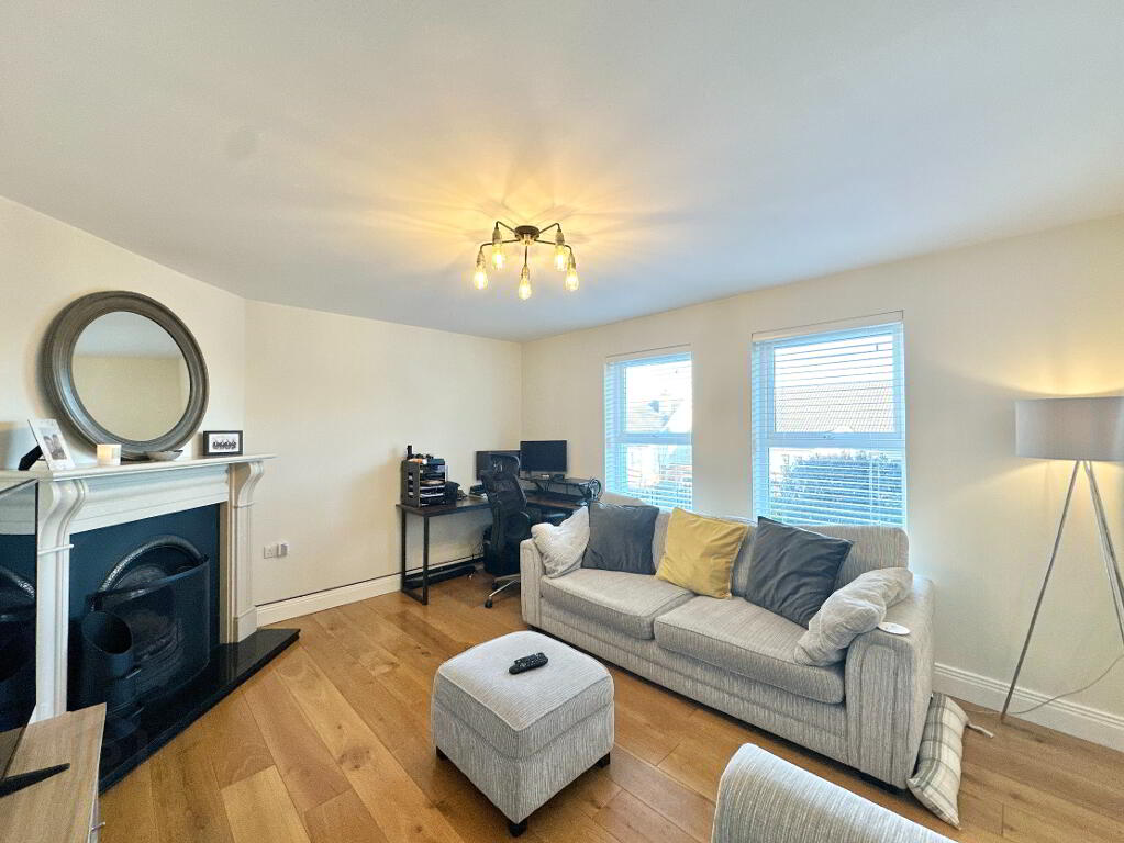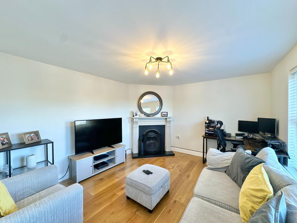 Living Room 4.30m x 3.60m. Laminate floor, Open fire, T.V. Point, recessed lighting.