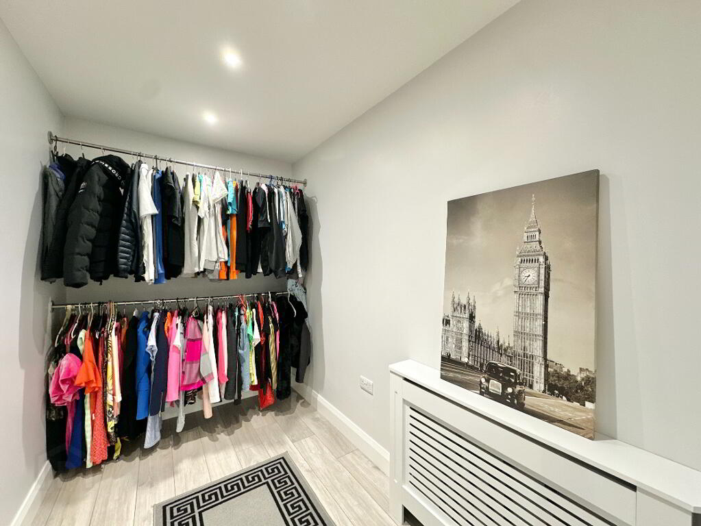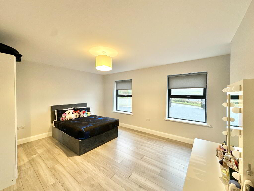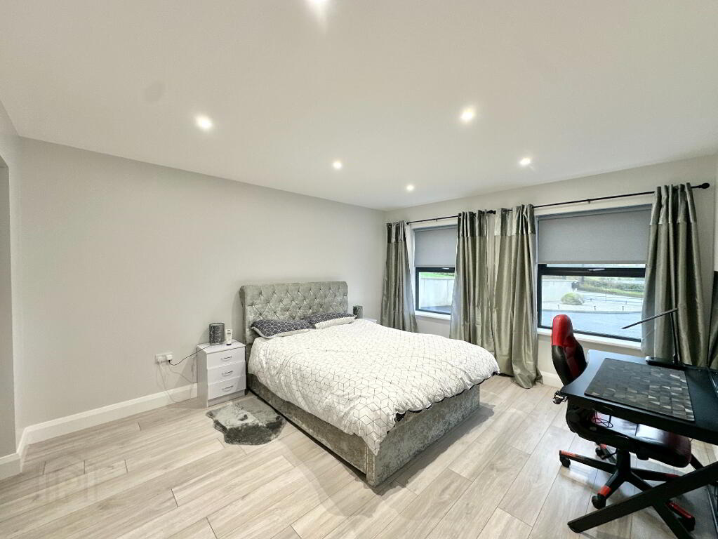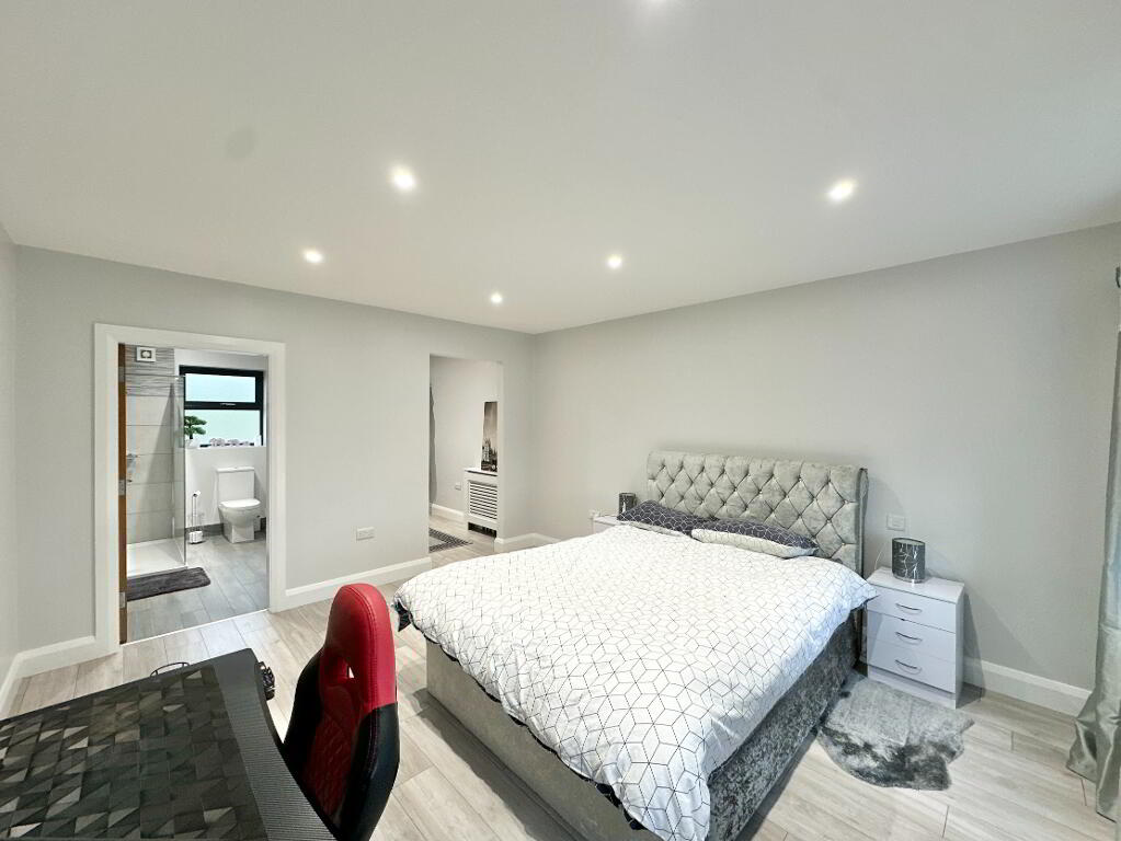 Bedroom 3 4.40m x 4.00m. Laminate floor. Walk in dressing room. Ensuite: toilet, wash hand basin, thermostatic power shower, heated towel rail, LED mirror, tiled floor, partially tiled walls