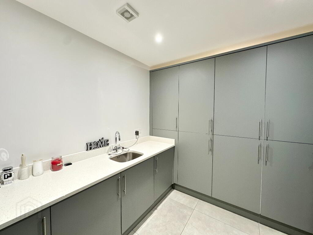 Utility Room 3.70m x 2.60m. High and low level units, undermount sink, Plumbed for washing machine and tumble dryer.