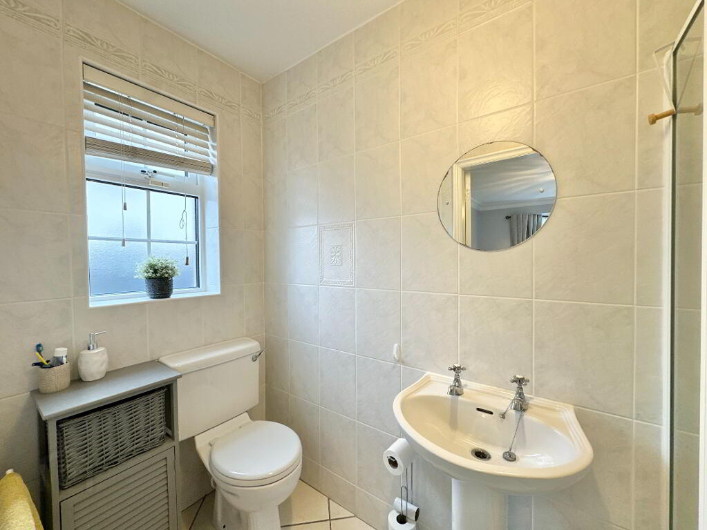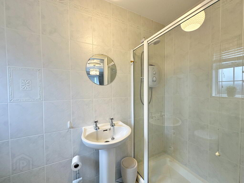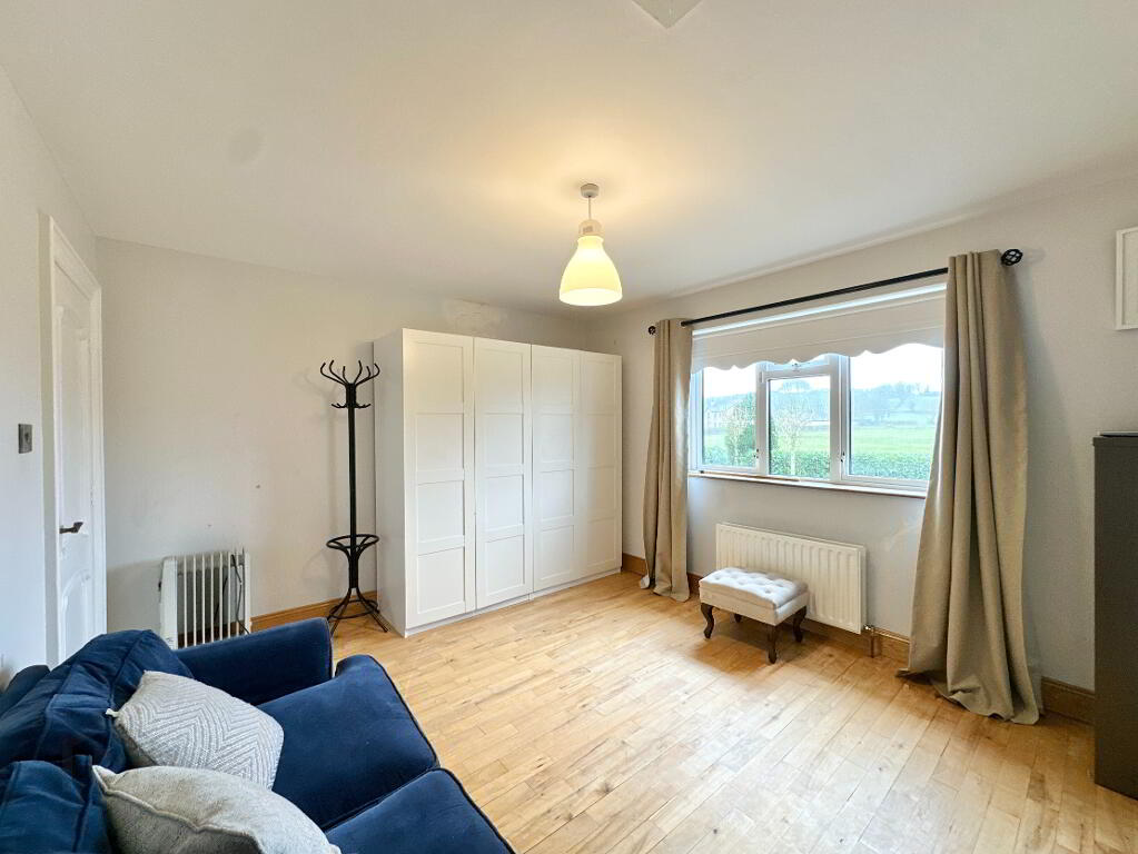 Bedroom 2 4.70m x 3.80m. Wood effect tiles, bay window, T.V. Point. Ensuite: Fully tiled with toilet, wash hand basin, electric shower.