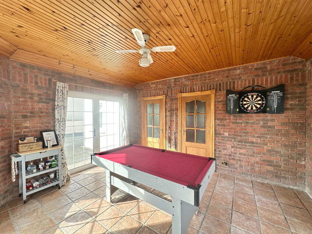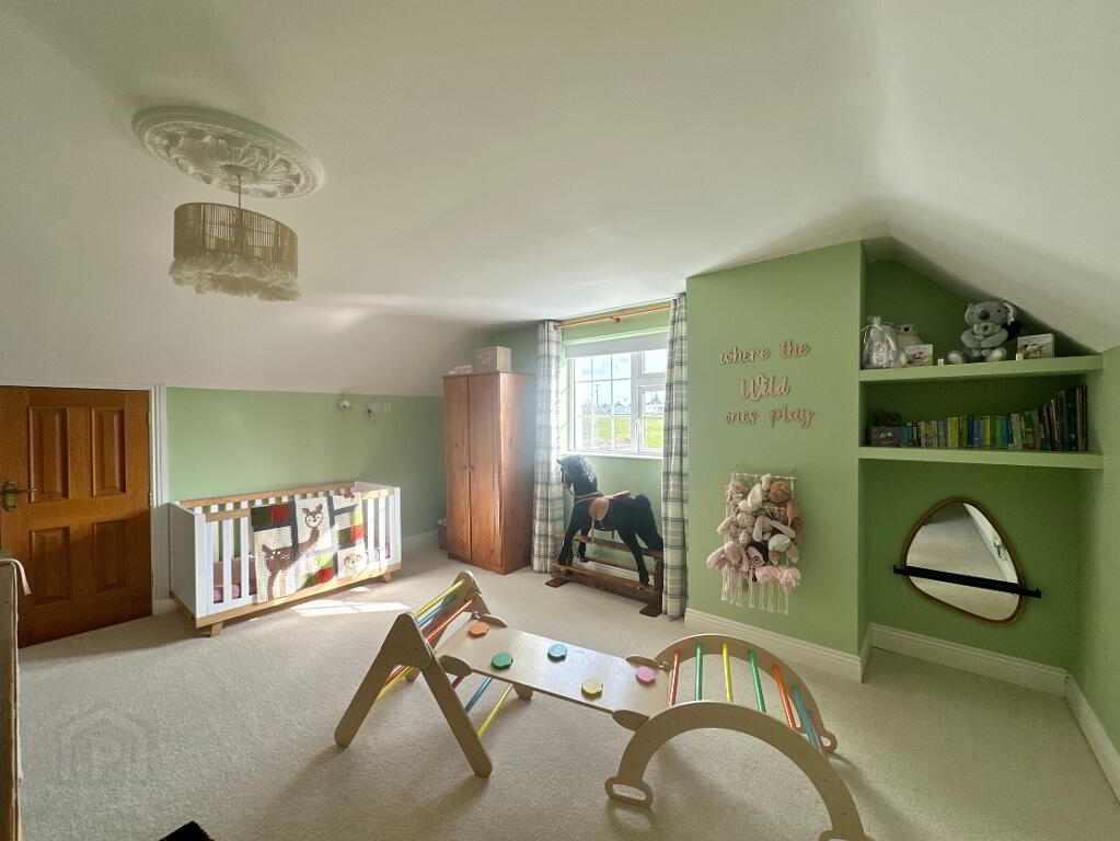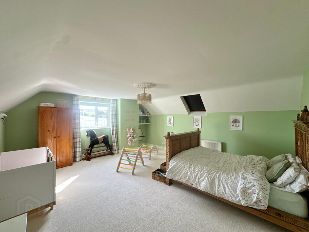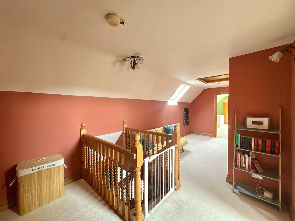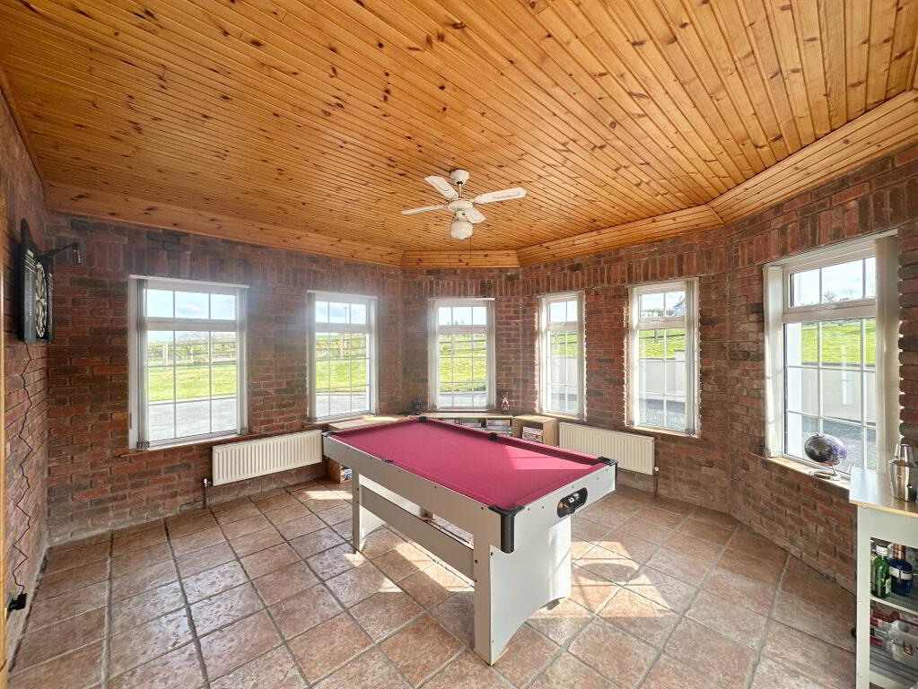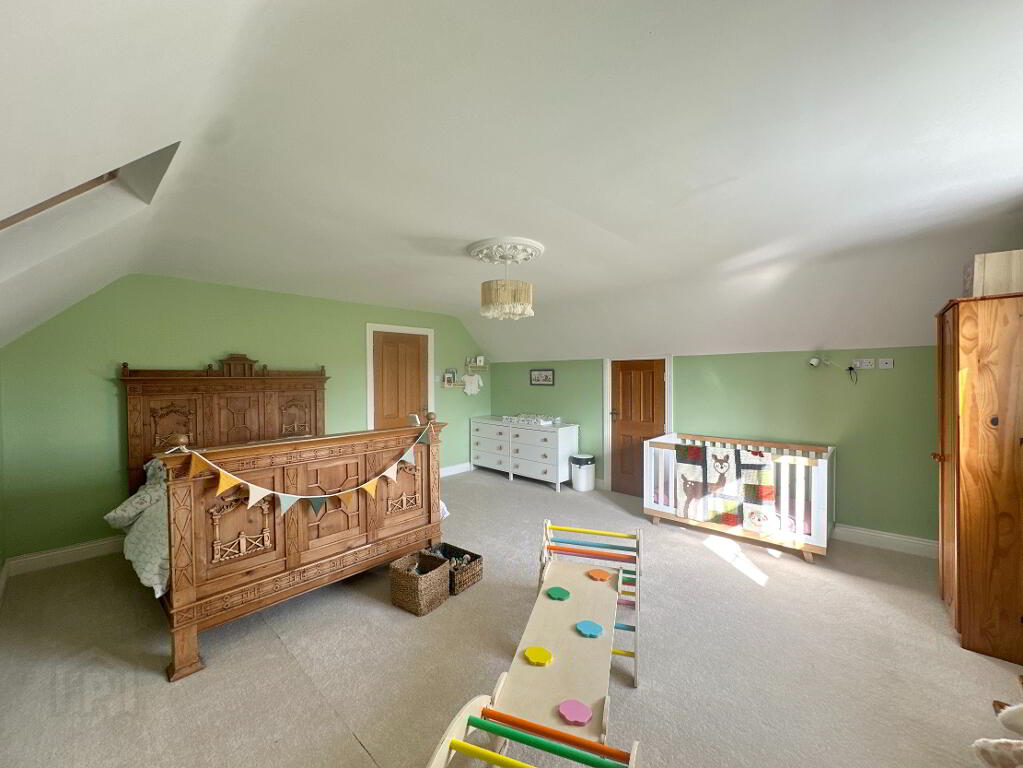 Occupying a generous site offering undisturbed panoramic views of the surrounding countryside, the property offers a secure space with spacious wrap-around driveway. The grounds are well maintained with lawns to front and side, with patio area and double garage to rear. For those with equestrian interests or a need for creative space, the property benefits from six former stables and a studio which may suit those who are self-employed, as a home office or as extra living accommodation.